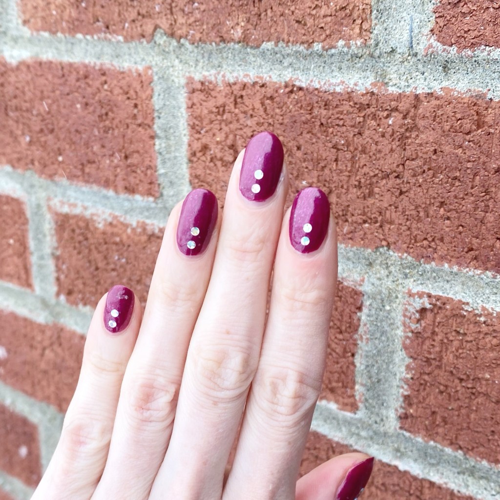 It gives the effect of rhinestones on your nails, without having to worry about hitting them against something & knocking them off! Just such a cute easy nail art look to wear!