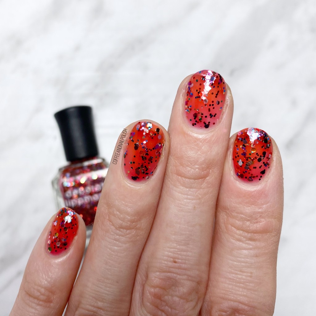 So let’s liven up this day with some nail polish. It’s Swatch Sunday, & I pulled out a beauty from the stash that was calling me. This is Deborah Lippmann Through The Fire.