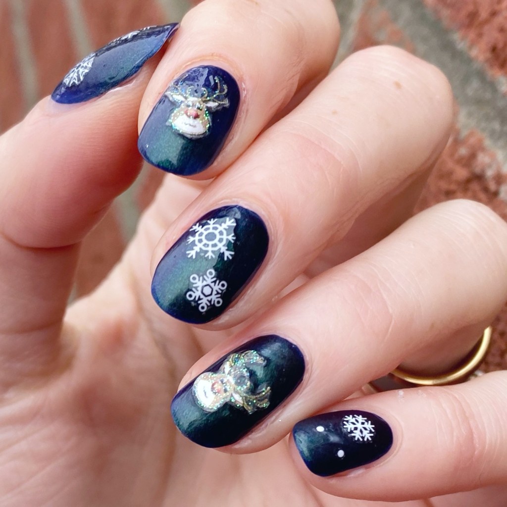 Okay I’m really really impressed with how easily these stuck to my nails, & adhered to my already dry base. They were fairly flexible & easy to stick on the nail, or adjust slightly if needed. I used tweezers to pull them from my sheet, & attach them to my nails, & most of the stickers I picked were easy to apply.