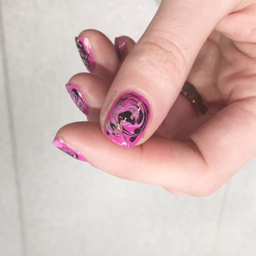The trick is you definitely don’t want to combine the polish too much as it can create a bit of a muddy effect– like my thumb. But when it turned out, oh boy does it look amazing! My ring finger was definitely one of my top favourites! I think it marbled the absolute best!