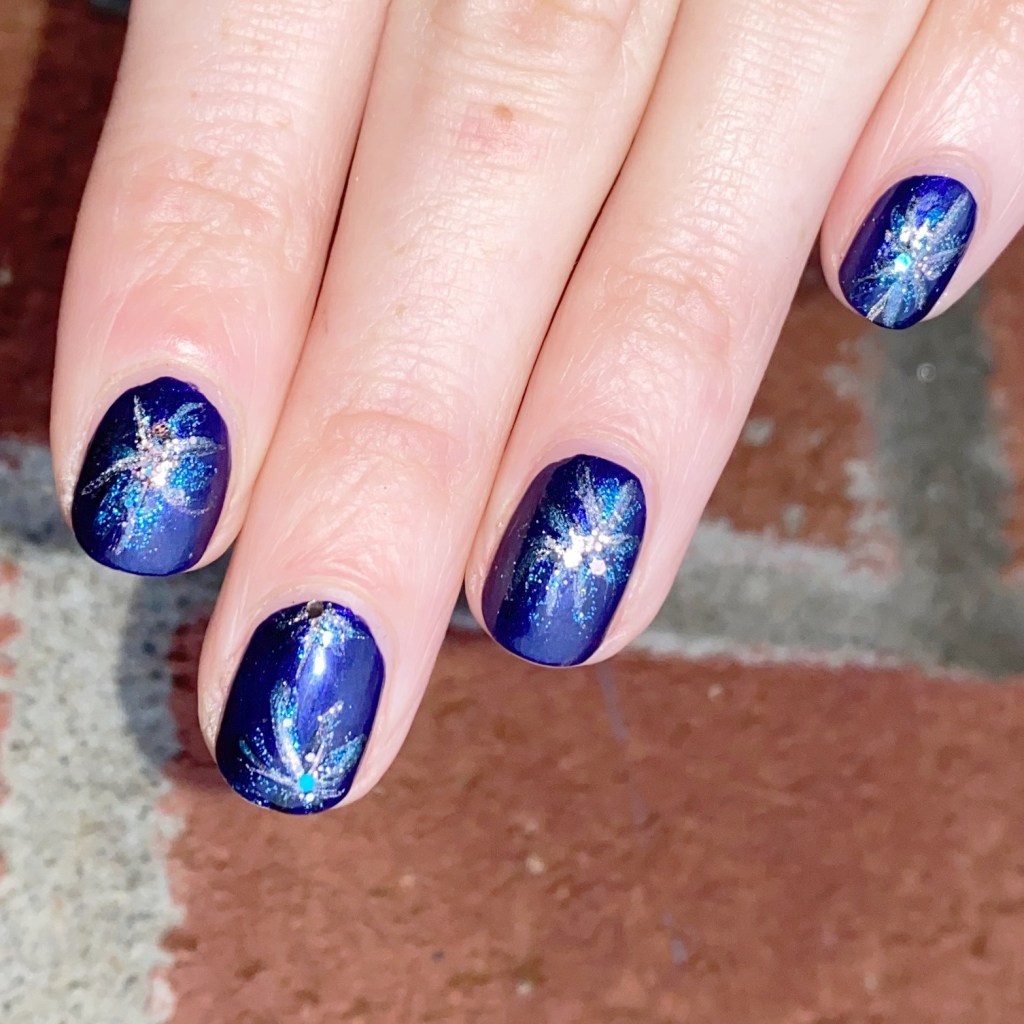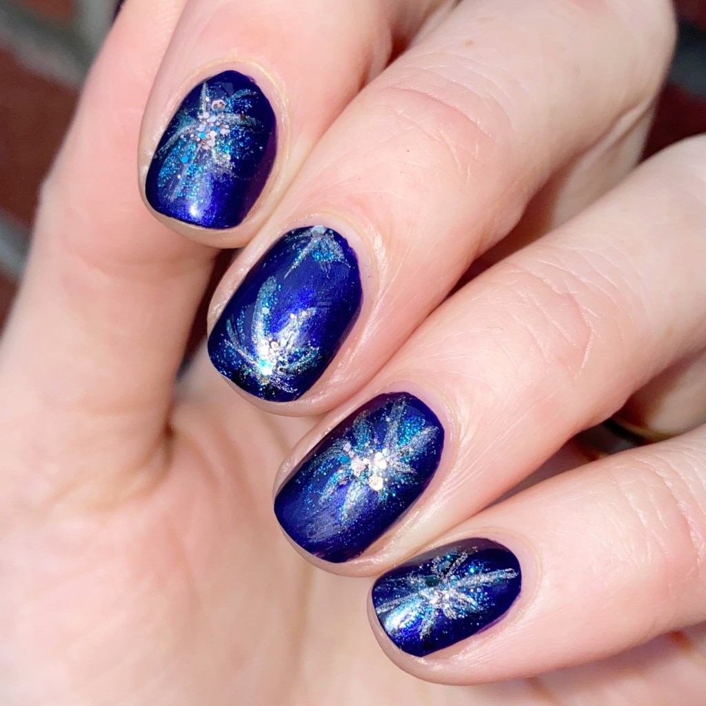 Not going to lie, these nails are giving me some Snow Queen/Elsa vibes on top of fireworks. Definitely the blue on blue on blue. Could also be the fact my 3 year old spent most of Christmas running around the house scream singing “Let It Go” at the top of her lungs. Haha.