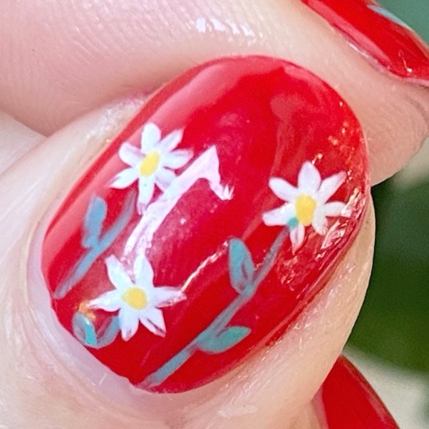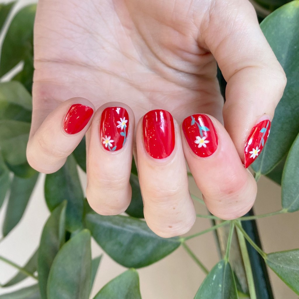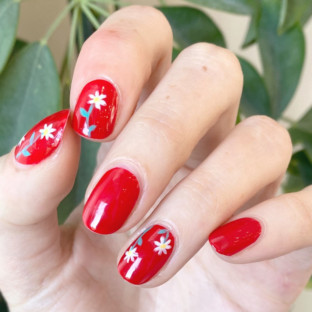 - Top Coat: Sally Hansen InstaDri Top Coat (red bottle)