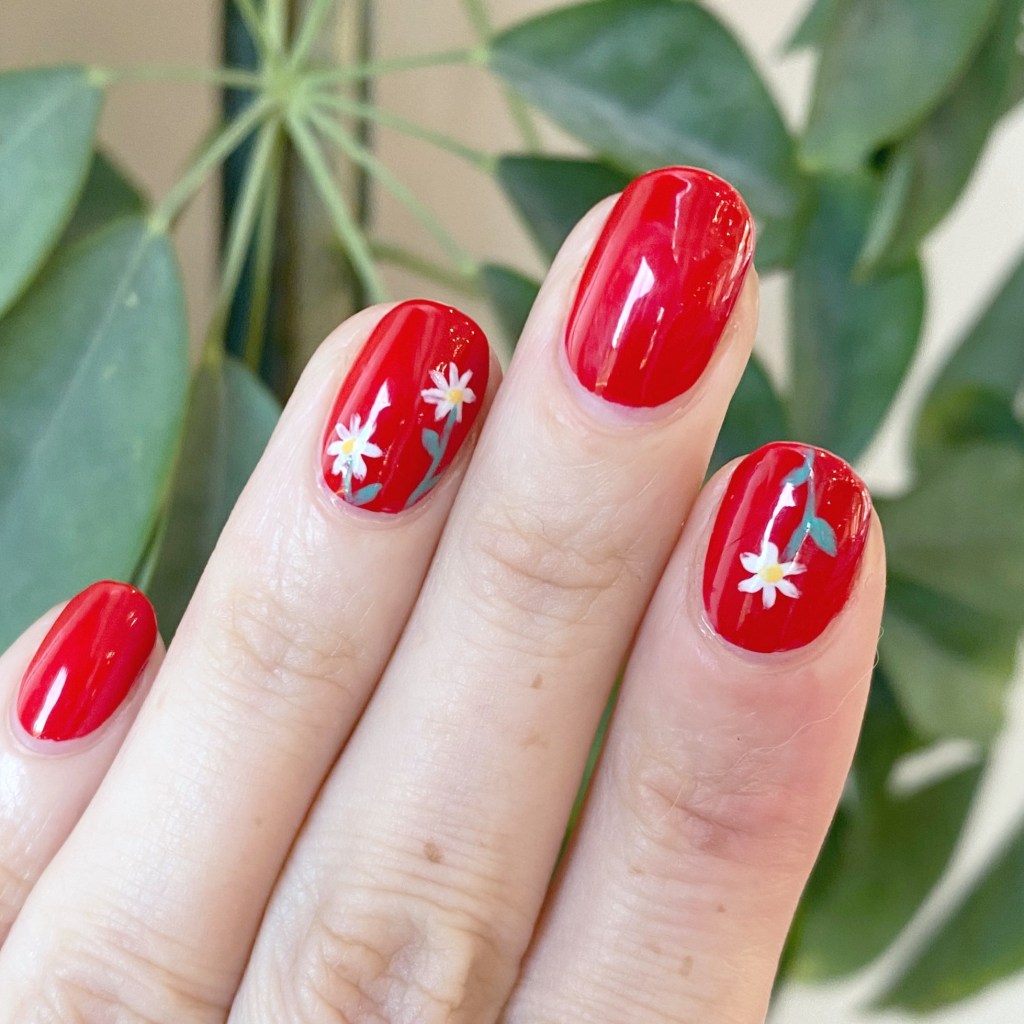 Secondly, I’m obsessed! Everytime I do floral I remember why I love wearing floral so much. It’s like me in a manicure. & these vampy roses—as challenging as they were to paint—just look so beautiful against the dark jewel toned based of OPI Bring Out The Big Gems. Just perfect for a gloomy November day.
