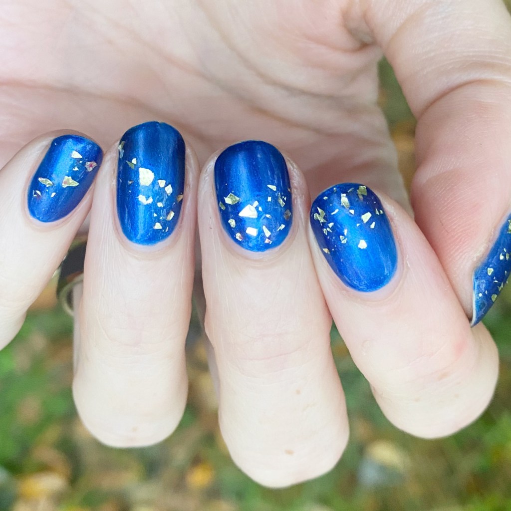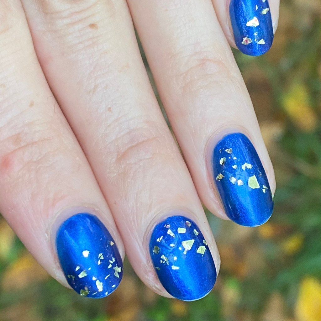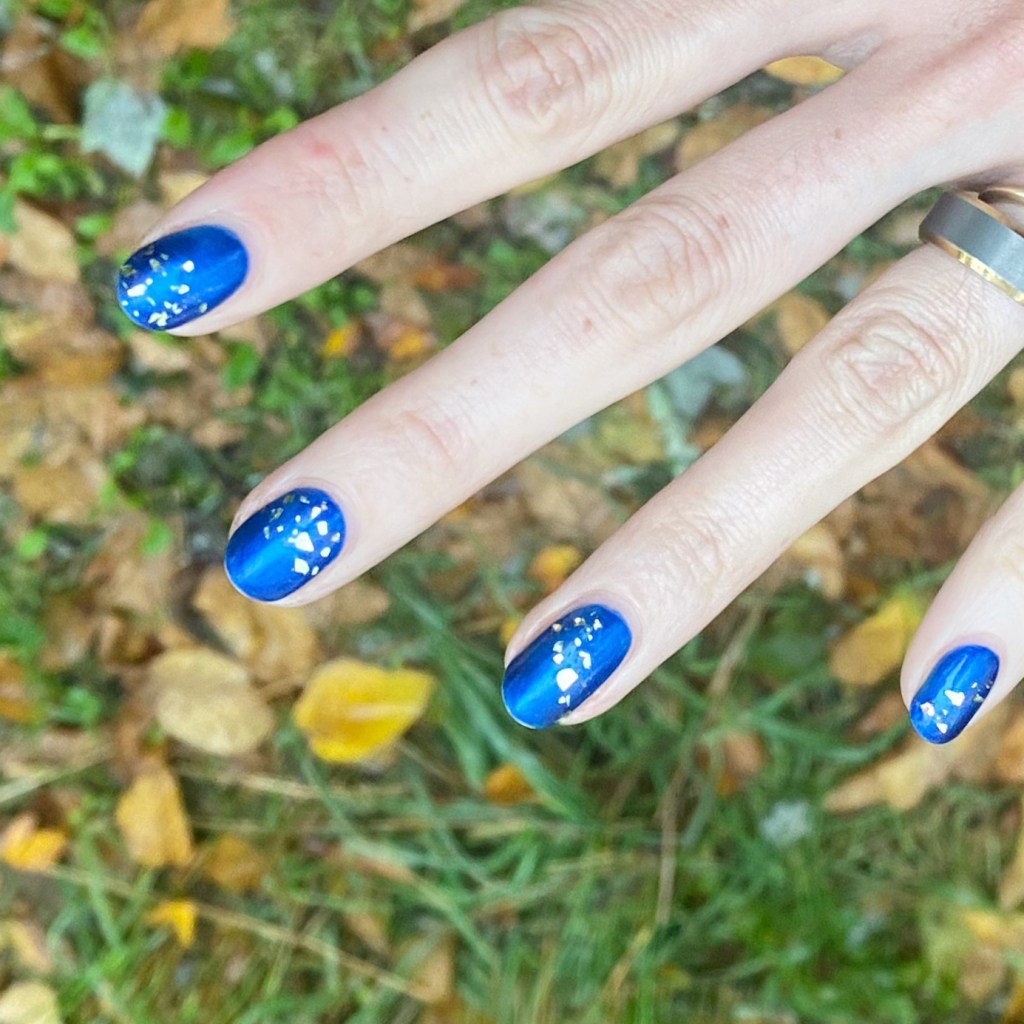 Todays it’s an old favourite nail art technique: glitter placement. I’m also wearing a nail polish I haven’t ever worn — the new formula of Sally Hansen Pacific Blue.