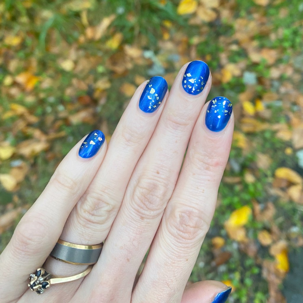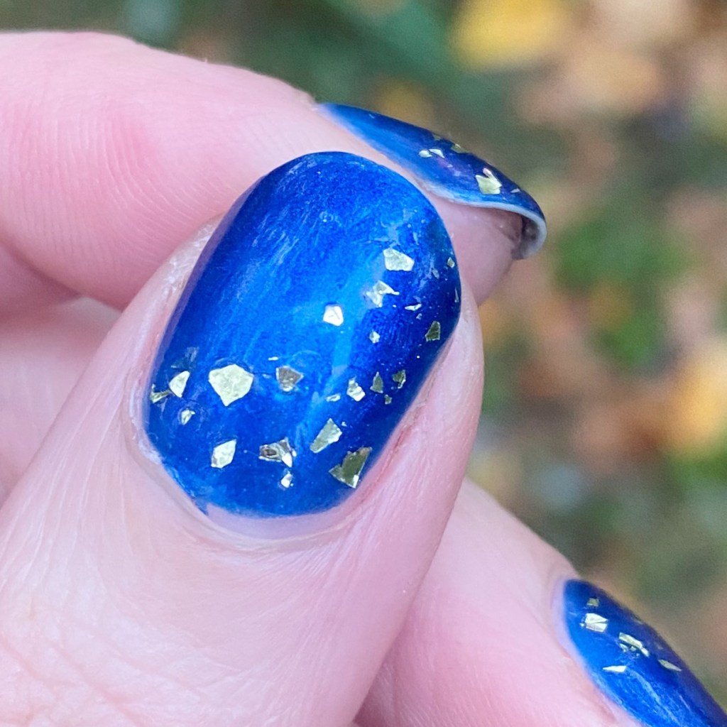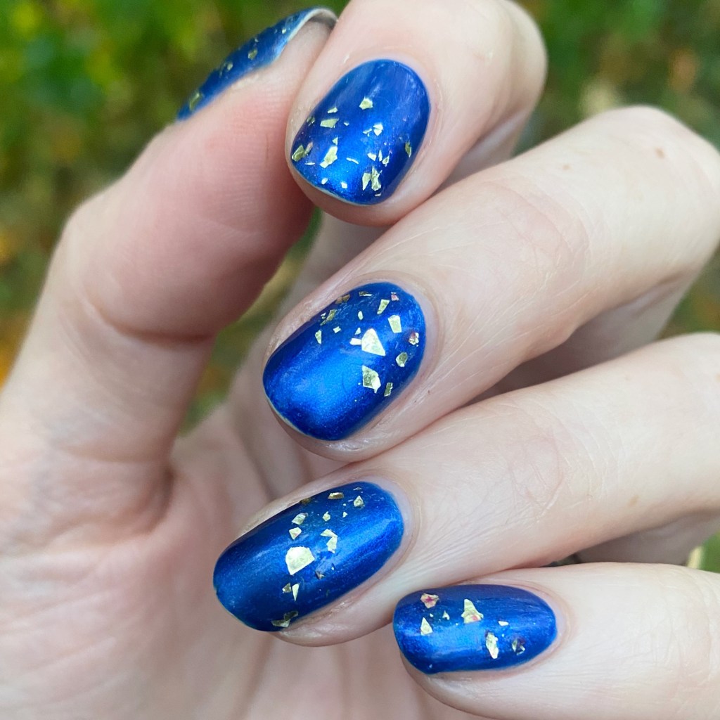 Todays it’s an old favourite nail art technique: glitter placement. I’m also wearing a nail polish I haven’t ever worn — the new formula of Sally Hansen Pacific Blue.