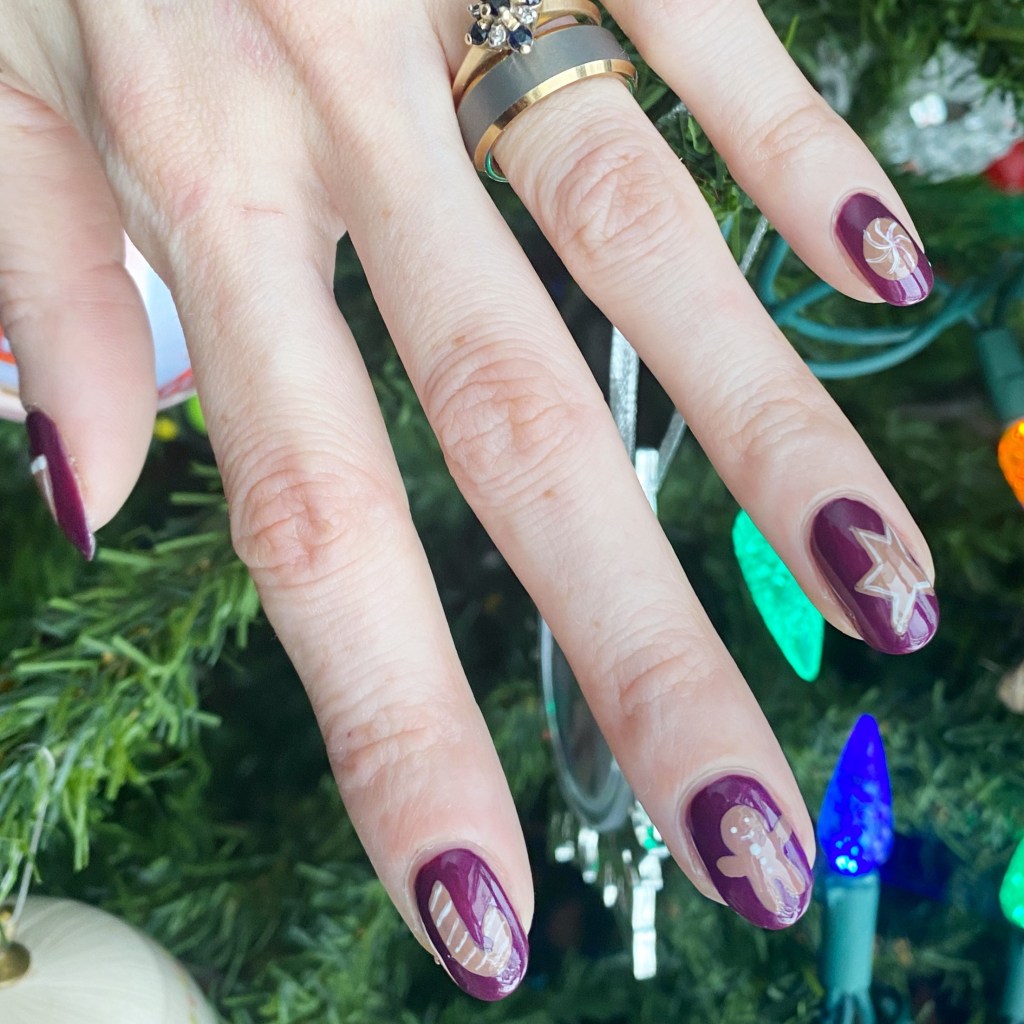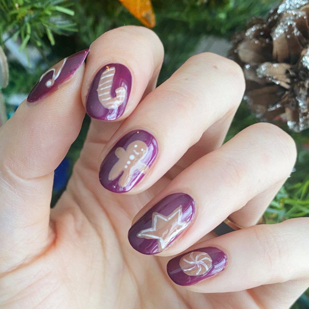 But today I have another Glam Nails Challenge December design to share & the prompt is Christmas Cookies! I love making Christmas cookies– my favourite thing to do at Christmas is make Gingerbread cats–so I was excited to create a cute Christmas cookie design on my nails.
