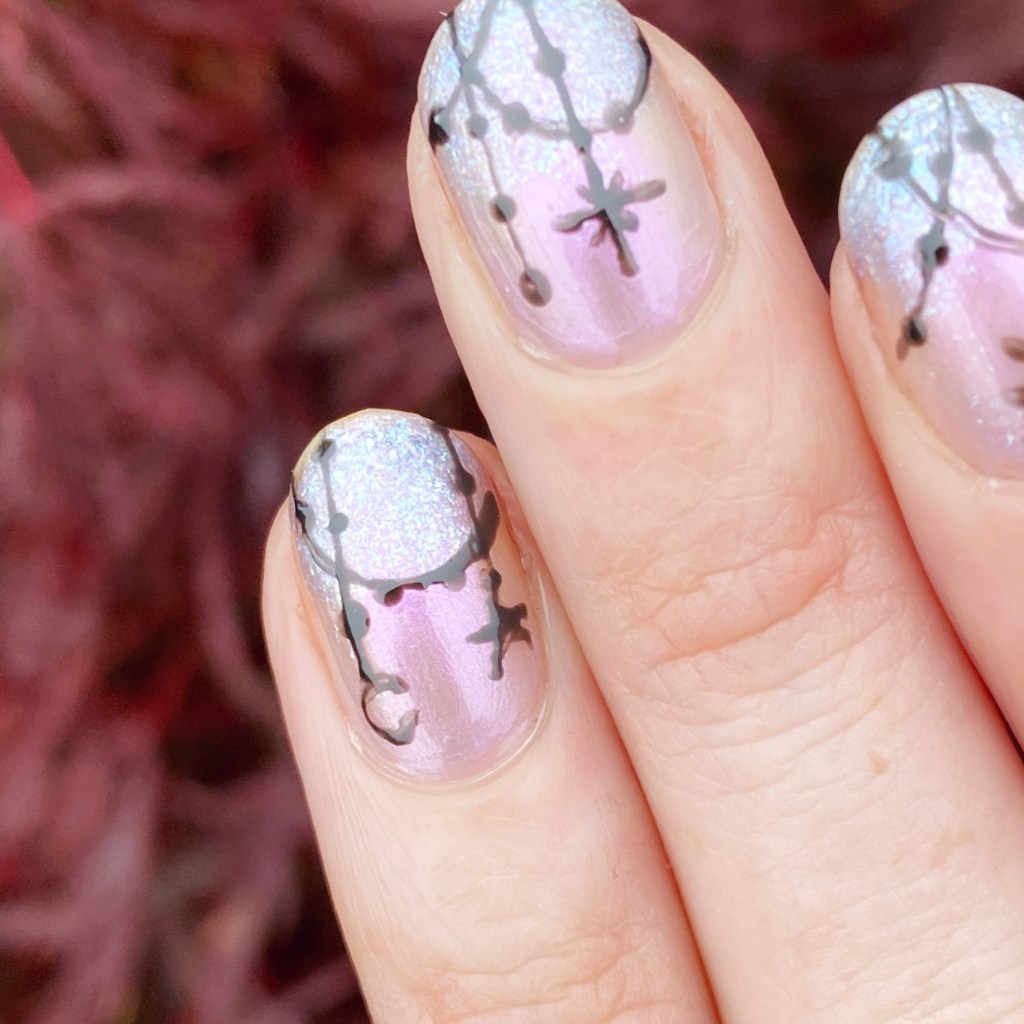 Originally I thinking of a sparkly green plaid, but as soon as I put Crystal Fog over Green with Envy it gave it a teal/turquoise colour instead. But I decided to go with it, & I think all the sparkly lines still give it the Christmas Plaid look I was hoping for. & I do love all the sparkle & shimmer of the look. If there is any time to break out the glitter, it’s obviously Christmas.