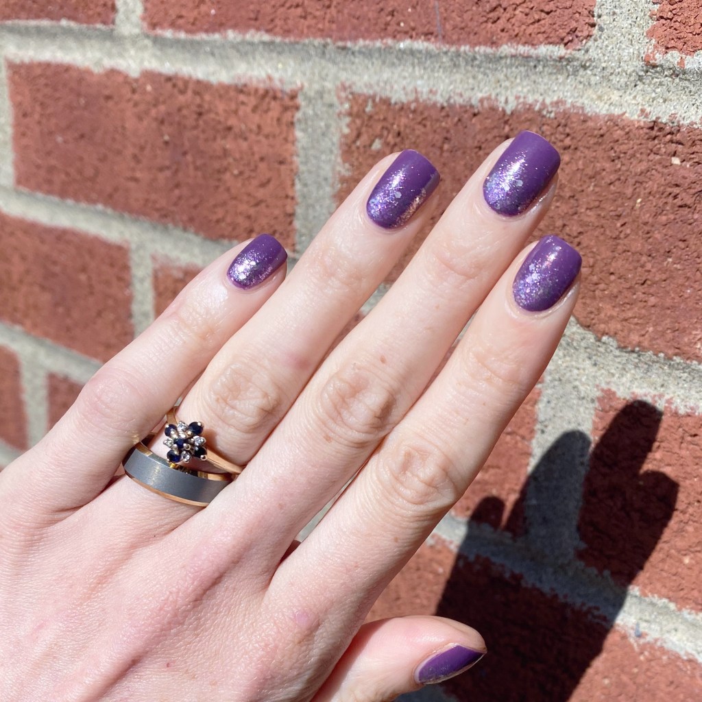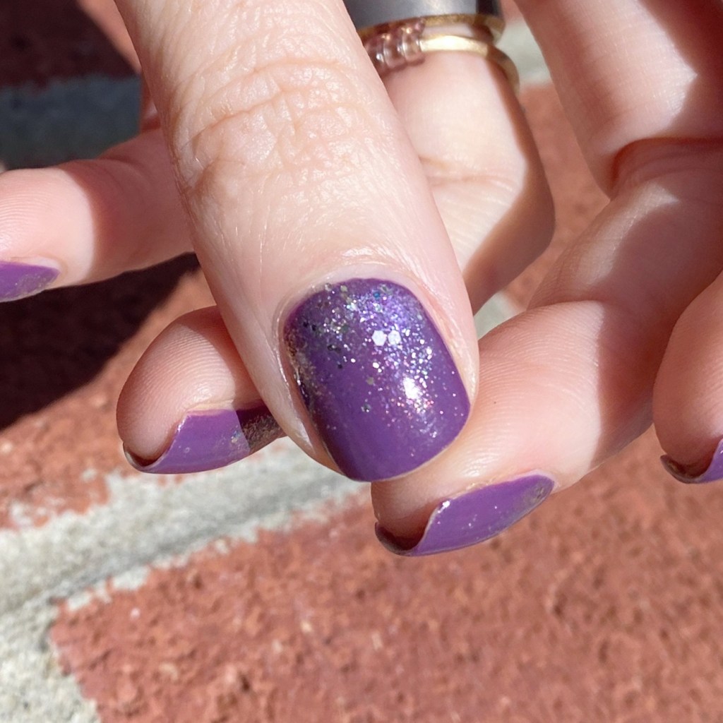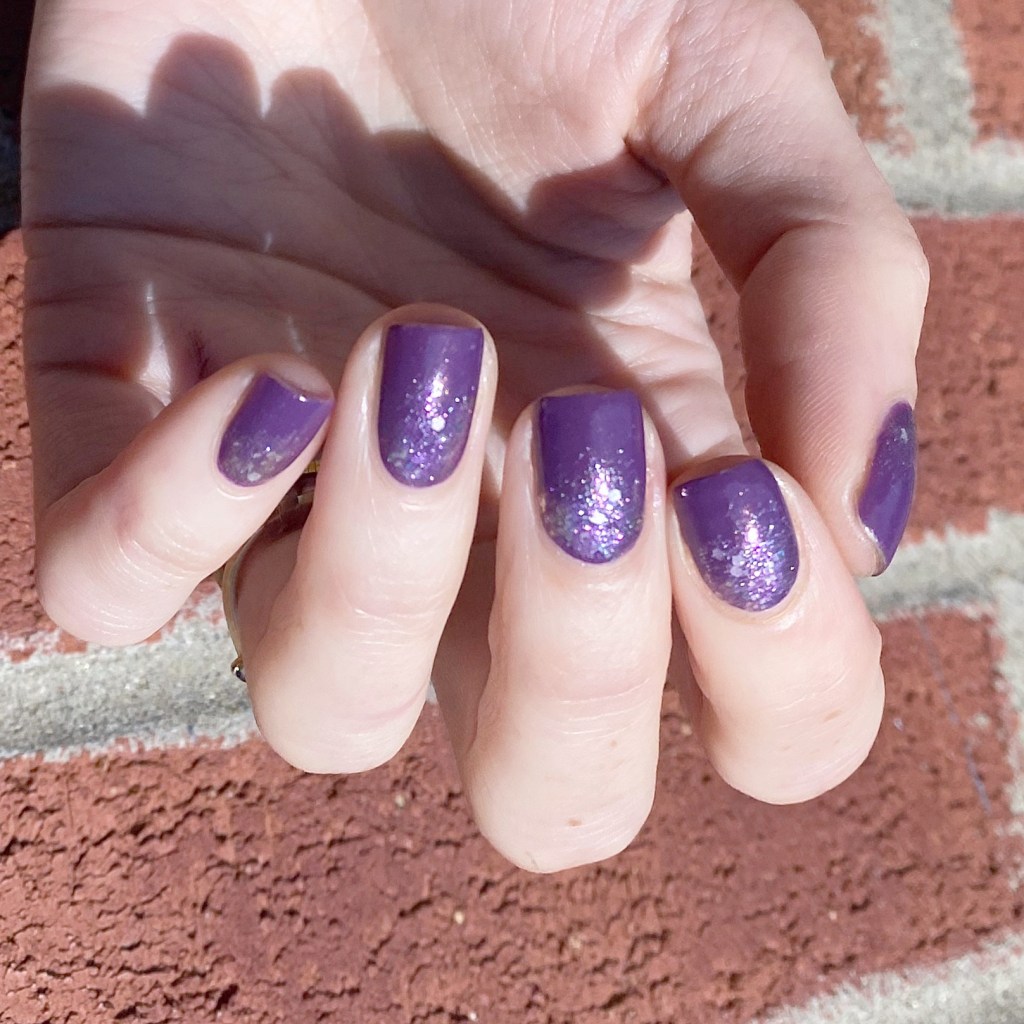 Check out that sparkle! I love it. I don’t know if I’ve ever worn this pretty sparkle before (it’s from the 2016 OPI x Hello Kitty collaboration) but I think it looks incredible over this purple. I love a good glitter gradient, & sometimes you find two polishes that just go together so perfectly. I love that moment.