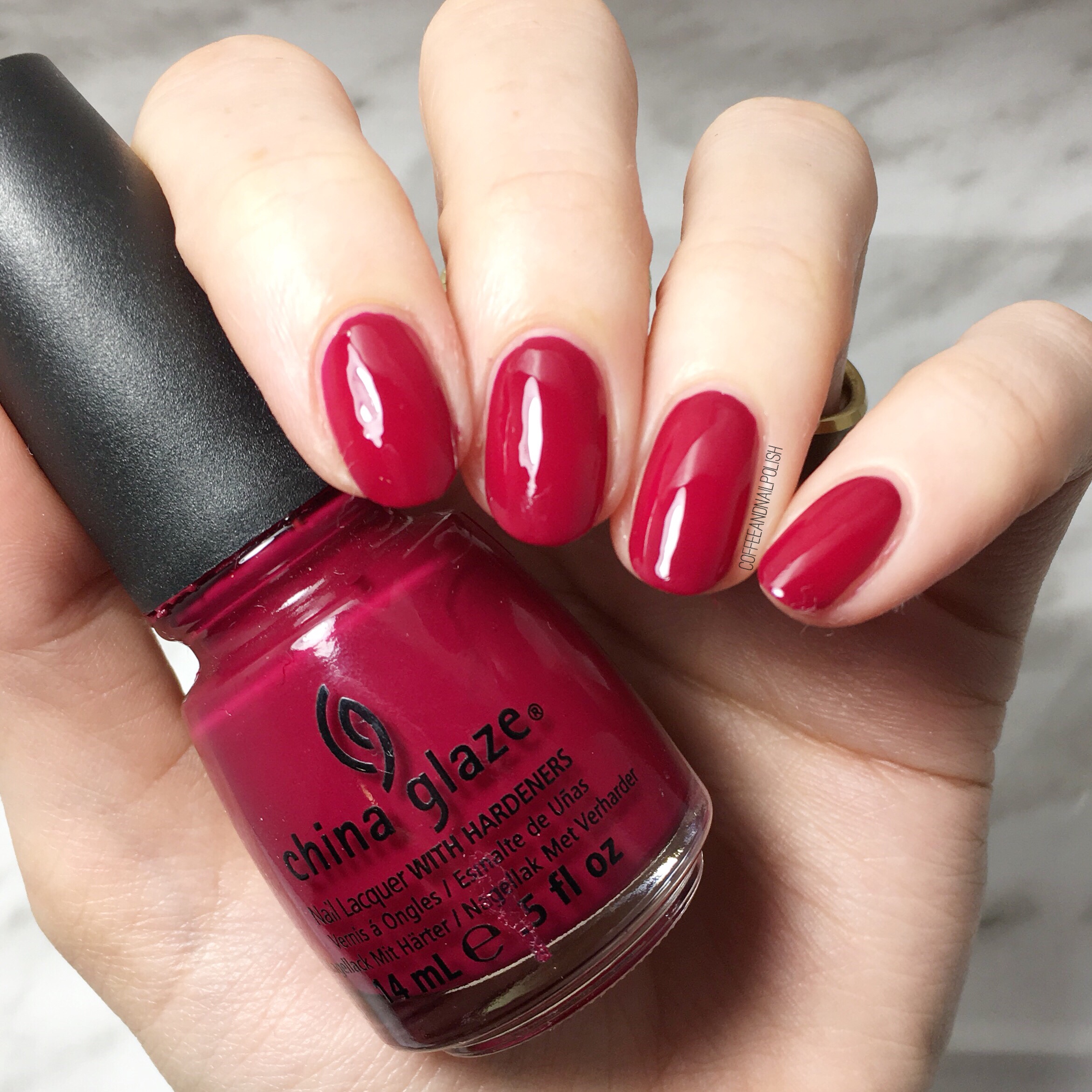 Firtst up is China Glaze Seduce Me, a deep berry red that applies in 2 coats, although if you’re careful you might be able to get away with one careful coat. My bottle is pretty old, so I went with two. I chose this colour for Valentine’s Day because I feel like it’s a really grown up colour: it has pinkish undertones but it’s not bubblegum pink & it’s also not that classic candy apple red shade either. It’s a little bit different, & I honestly feel like this shade is one that will look great on everyone! It also pairs really well with other pink & reds for nail art (like some zig zag chevrons perhaps?)
