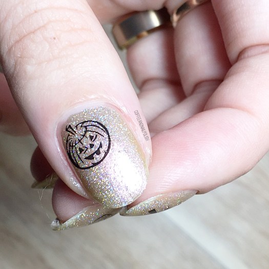 I just love how this design turned out. Honestly I never thought I would enjoy stamping so much, but it’s kind of become an obsession! I ordered a bunch of new plates from Born Pretty Store, so those should be here sometime in the New Year. In the meantime, I’ve been rediscovering old stamping plates I bought in the beginning of my nail art journey. I think the combination of a good liquid latex & polishes that work well for stamping has made it more fun & much less of a frustration. Also how pretty is ACO by Ardene Style Icon? I sponged it on for full glitterocity & the sparkle is hard not to stare at. Again thank god for Edge Perfection because trying to clean that glitter off my cuticles would have made me cry.