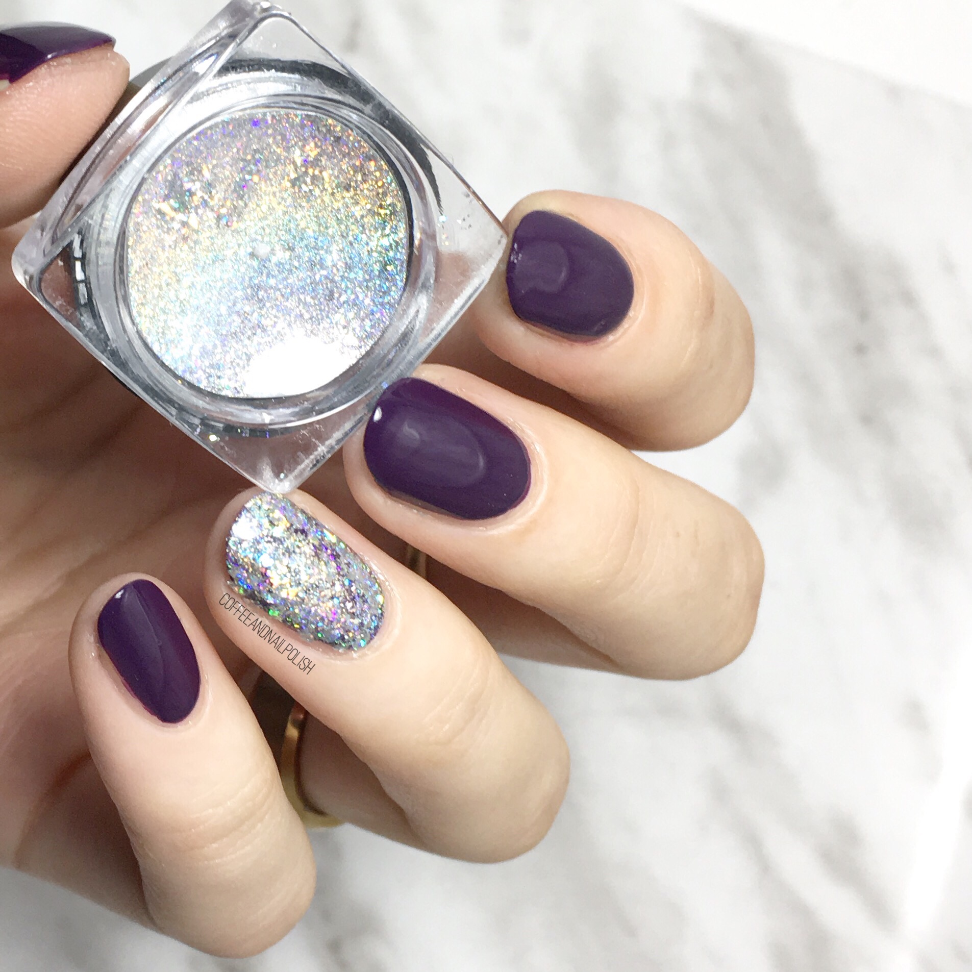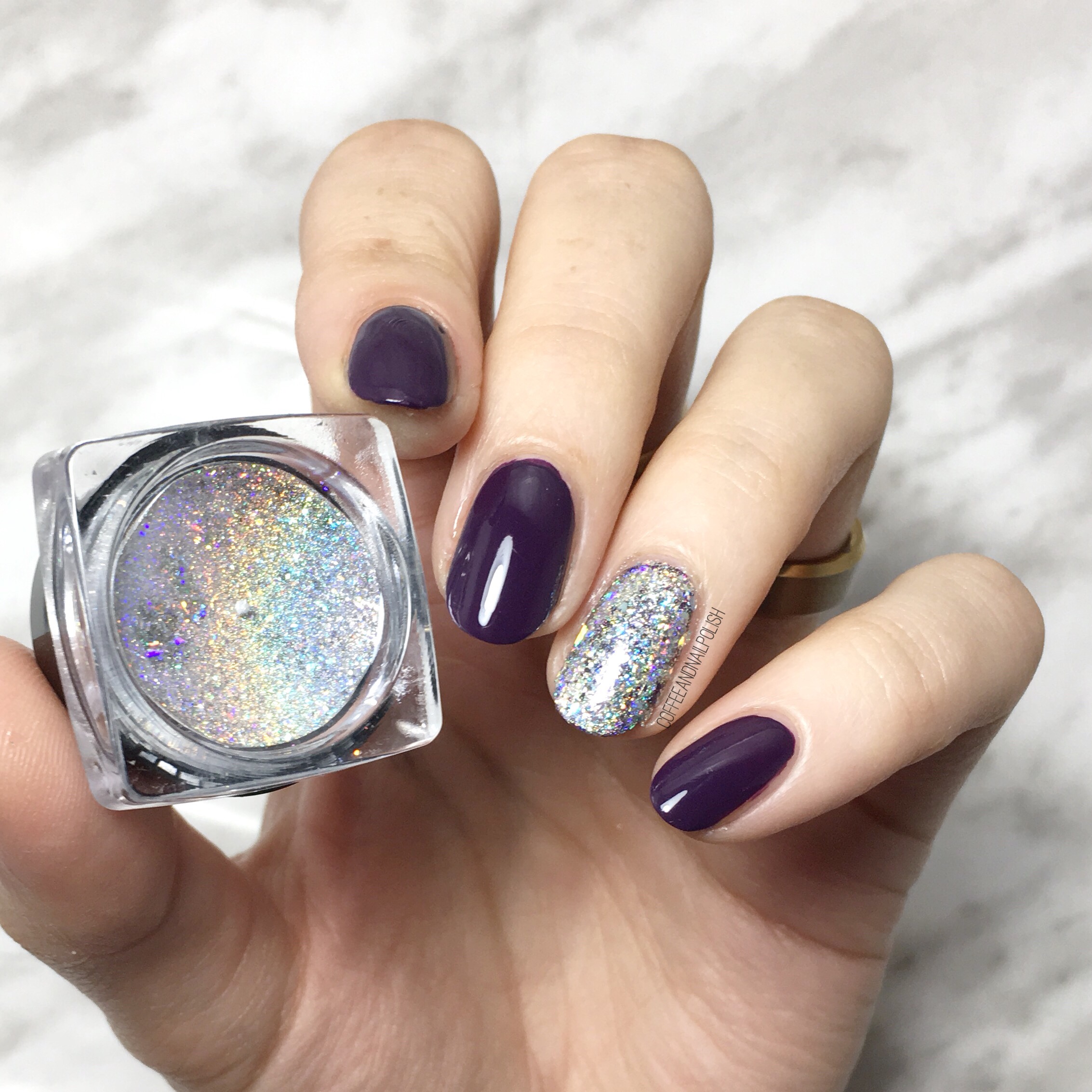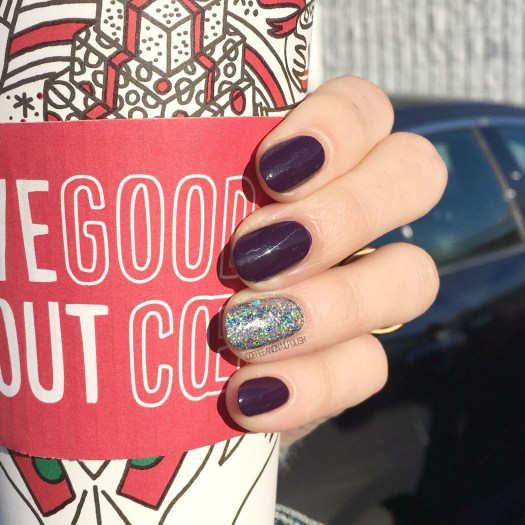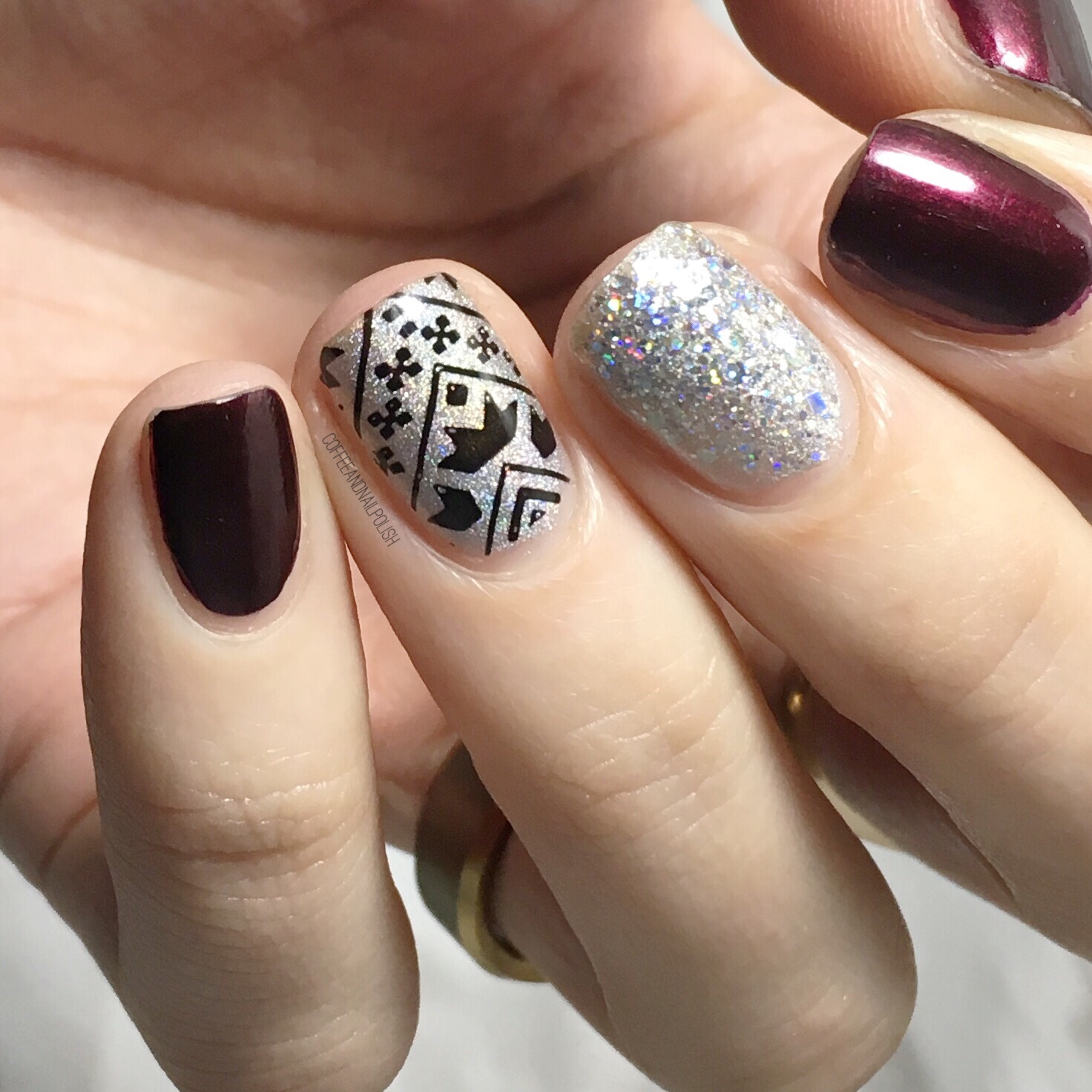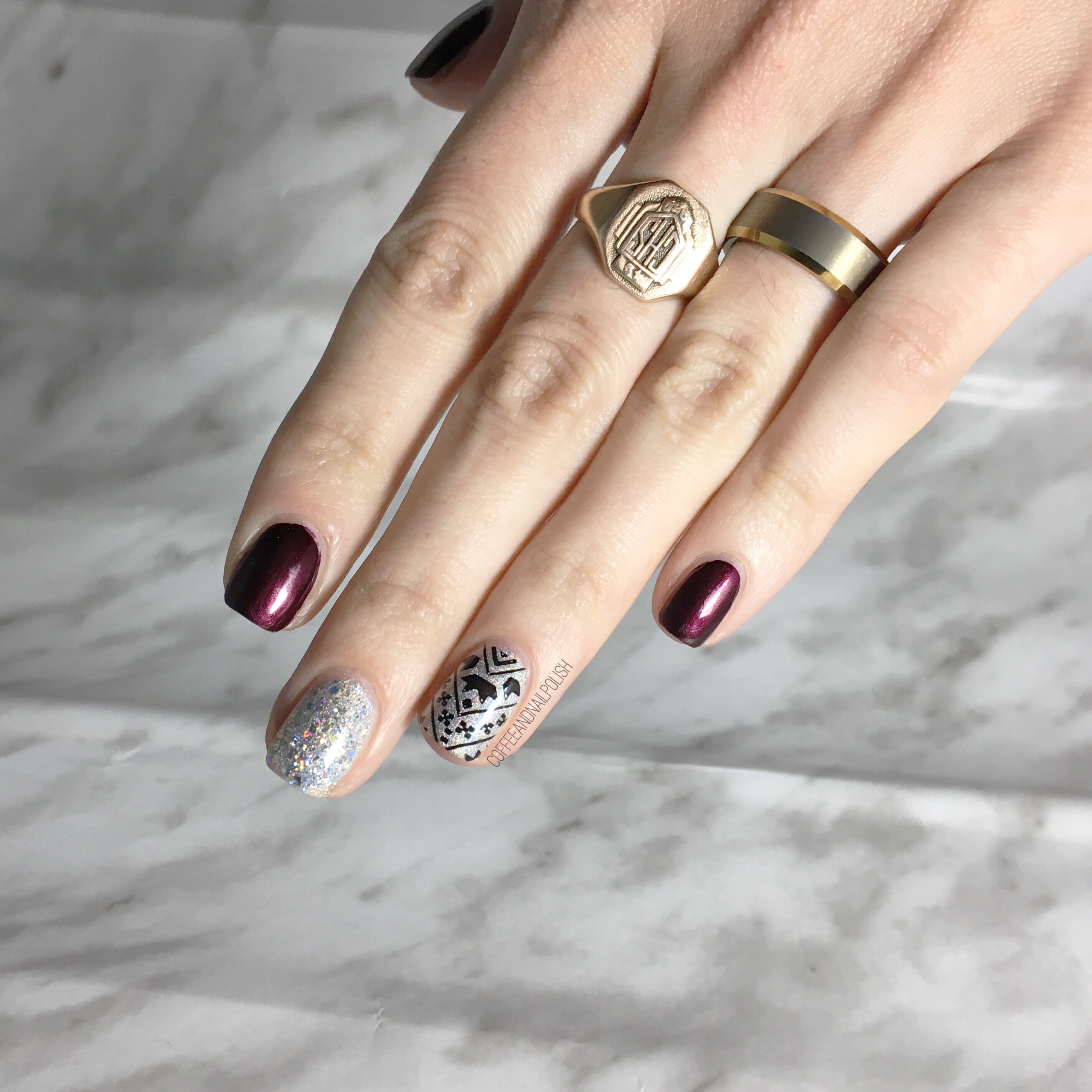 I wore this nail art design the other night when I was invited to a Mark’s Well Worn Media Event–the first blogger event I’ve ever been invited to! It was pretty exciting & obviously I needed to wear something fancy on my nails for the occasion. & what is more fancy than some holo glitter & a little stamping accent nail. ✨