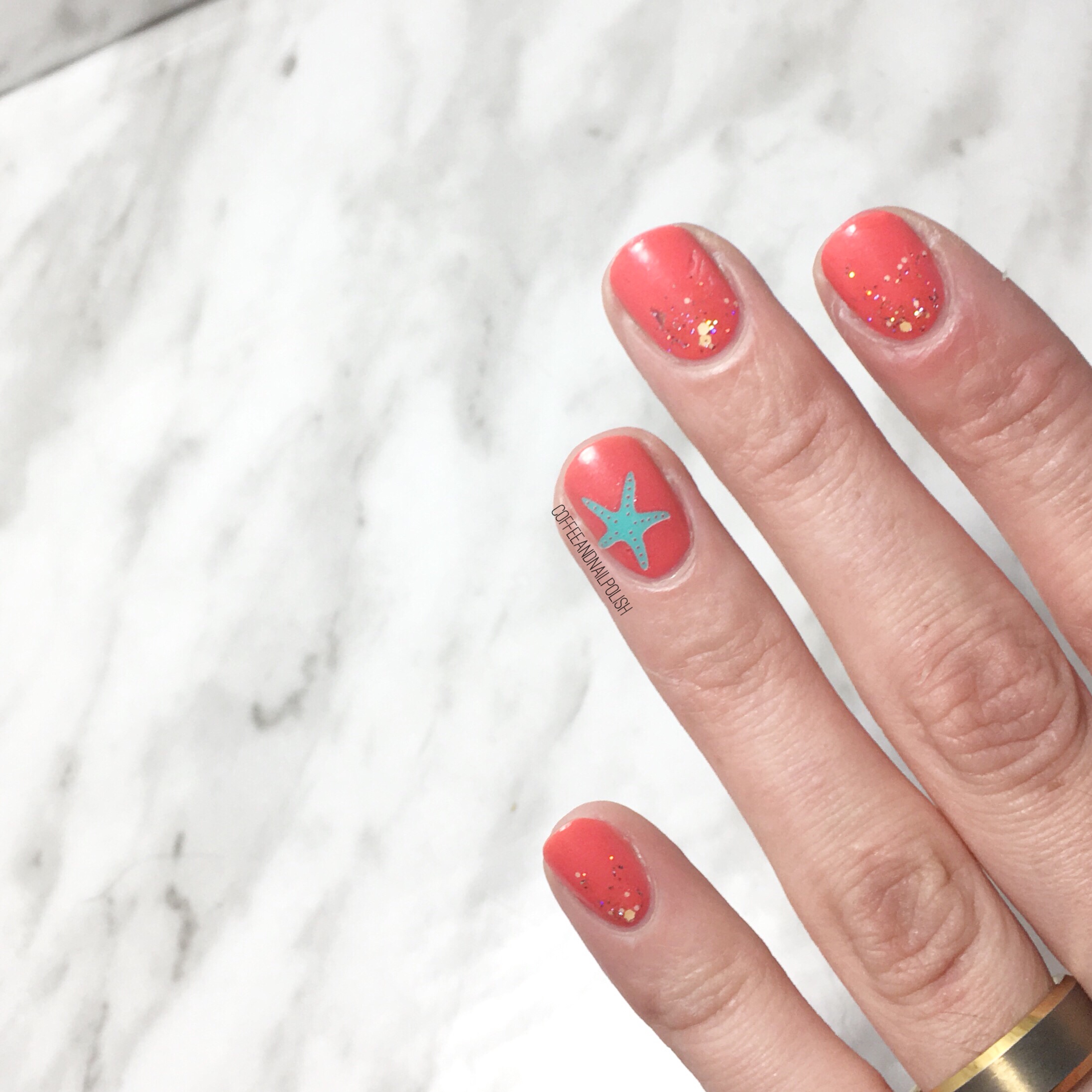 Originally I was planning on just wearing Essie Sunday Funday on its own with the starfish sticker, but it really felt like it needed something extra which I why I added the glitter gradient on my other nails…. & I LOVE how it turned out. Like, seriously love. It gives the design that Beachy feel I was hoping for without too much work. Like I said, it’s been a CRAZY few weeks with a lot of late nights at work, so nail art has taken a bit of a back seat. Thank goodness I have a huge back stock of nail art stickers & decals & other goodies to make doing my nails so much easier!