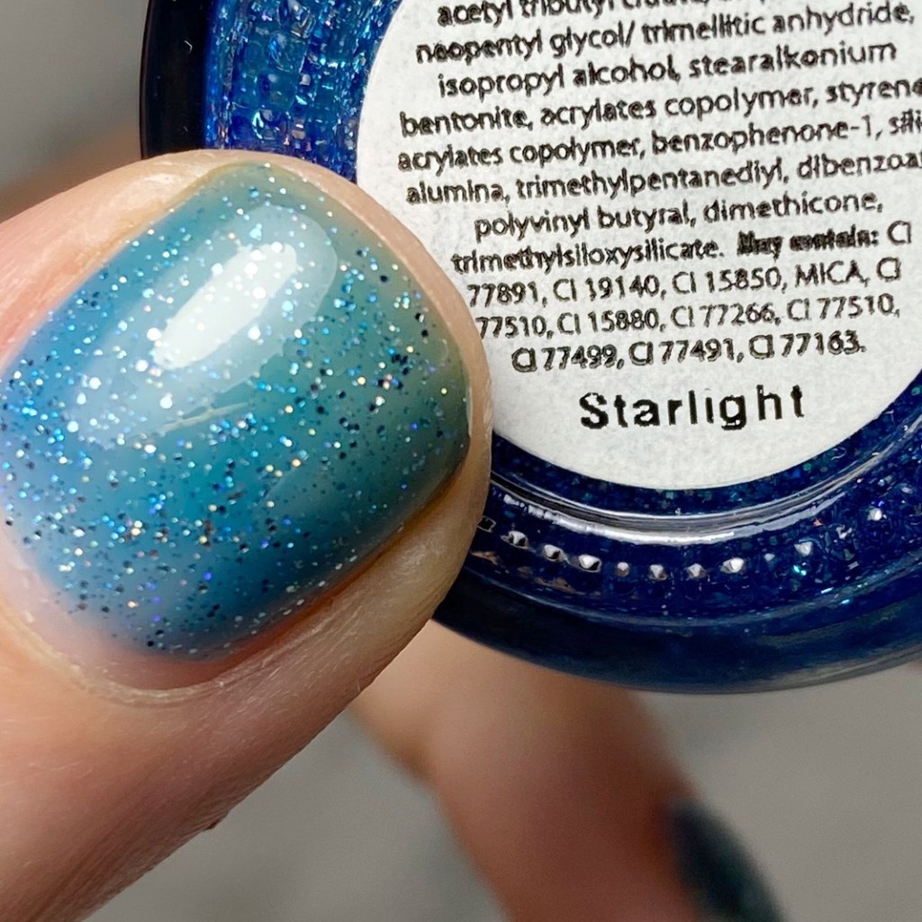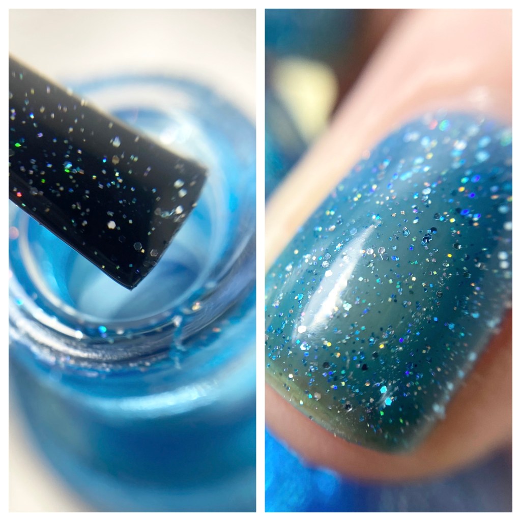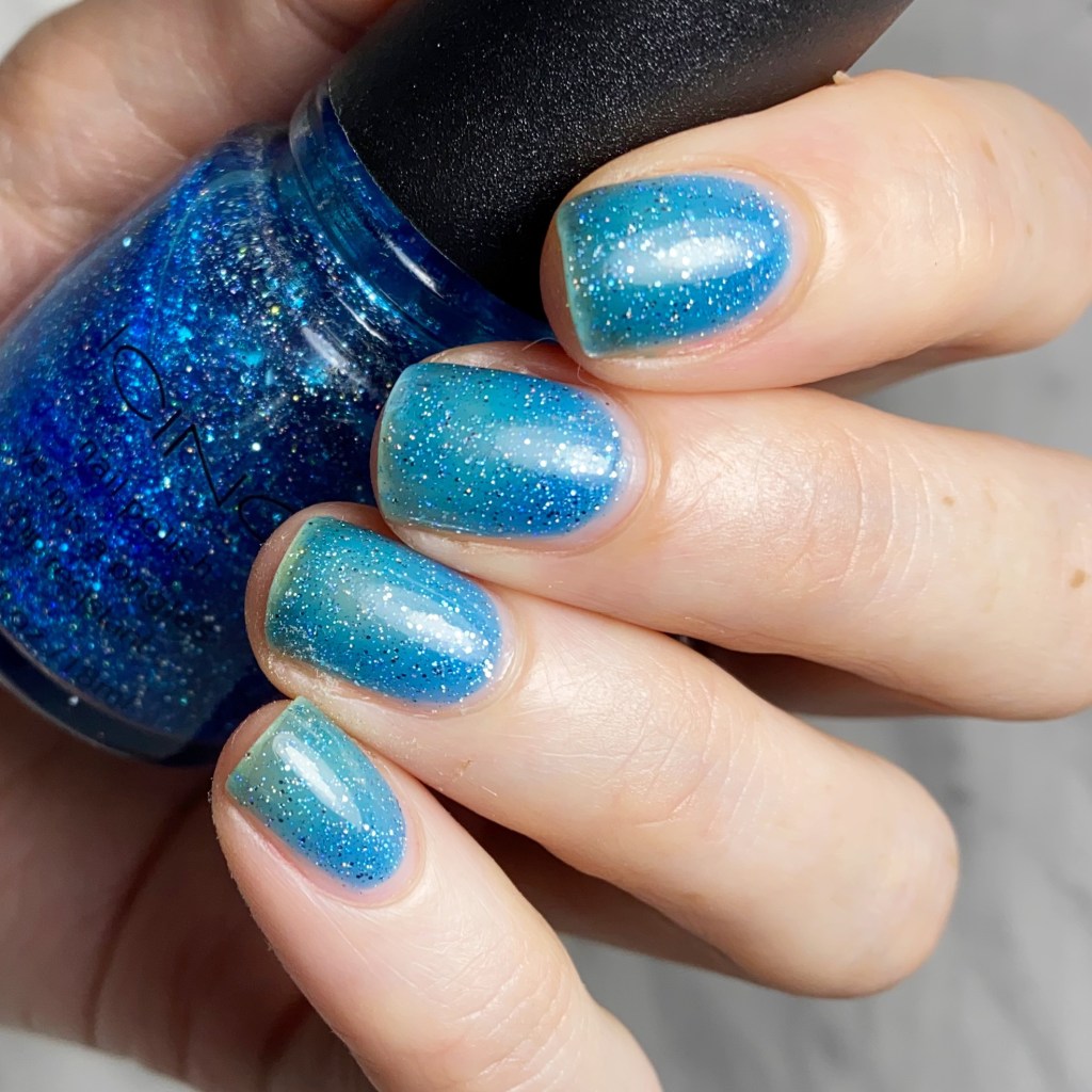 For this look, I went with the classic sponge effect for my design. I used two shades I thought suited each other well, especially the shifty base of Mermaids Have More Fun. Then I added the little details of the stars, for that fun galaxy effect. I really like how everything came together.