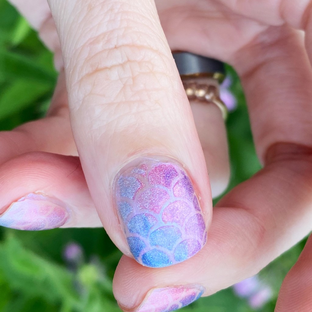 How pretty did these turned out?! I feel like with my new blue hair, I’m all about the mermaid vibes lately. Mermaid hair just needs mermaid nails.