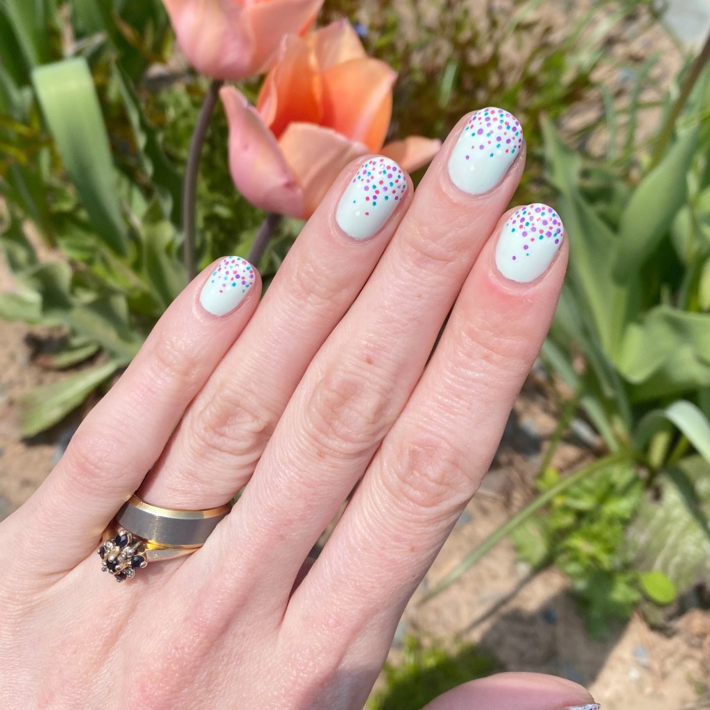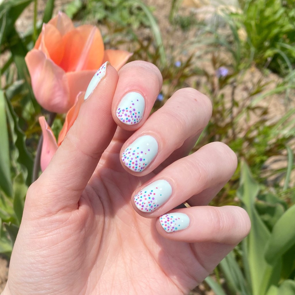 Today I went with a simple but fun look to wear. I love a good gradient dotticure, but I realized it’s been a long time since I actually did one. This design was actually inspired by this look from 2016. I thought since we were back down to shorties, why not find some fun nail art to do on short nails!