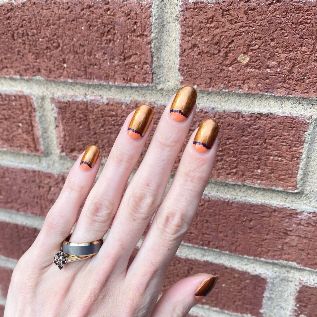 Today I have another fun Autumn toned design to share with you. This one is a pretty easy one I feel like anyone can recreate, & it’s definitely eye catching.