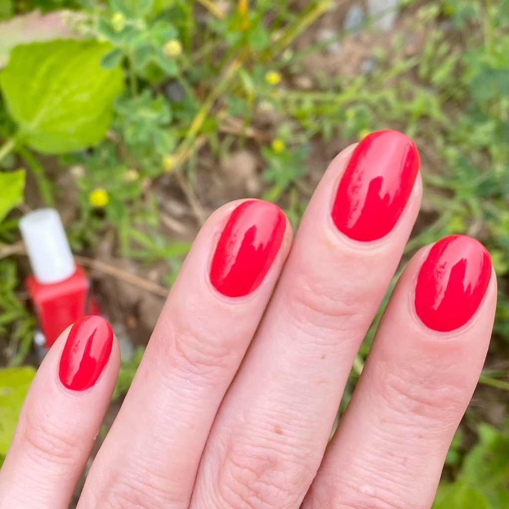 I was kindly gifted this beauty of a shade by Essie a few months ago, when they also sent me New Highs from the Dopamine Rush collection. Electric Geometric is a beautiful fiery red cream, that applies very smoothly on the nail. 2 coats gives you fantastic opacity, which I like in a red nail polish. It was originally released as part of the Pattern Play collection in 2022, but then became part of the core collection.