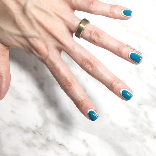 Ooooooh this colour combo works so well. This is one of my all time favourite Essence shades, & when I noticed my local Shoppers was taking it out of their Essence display (& had marked them all down to $1) I may have stocked up on extras… like 3 extra bottles… pretty much all the ones they had. It’s just such a good shade! It pairs well with pretty much every colour–purple, pink, mint, light blue, yellow. I haven’t discovered a colour combination I didn’t like. But I have to say, pairing it with mint has definitely become a favourite thanks to this design!