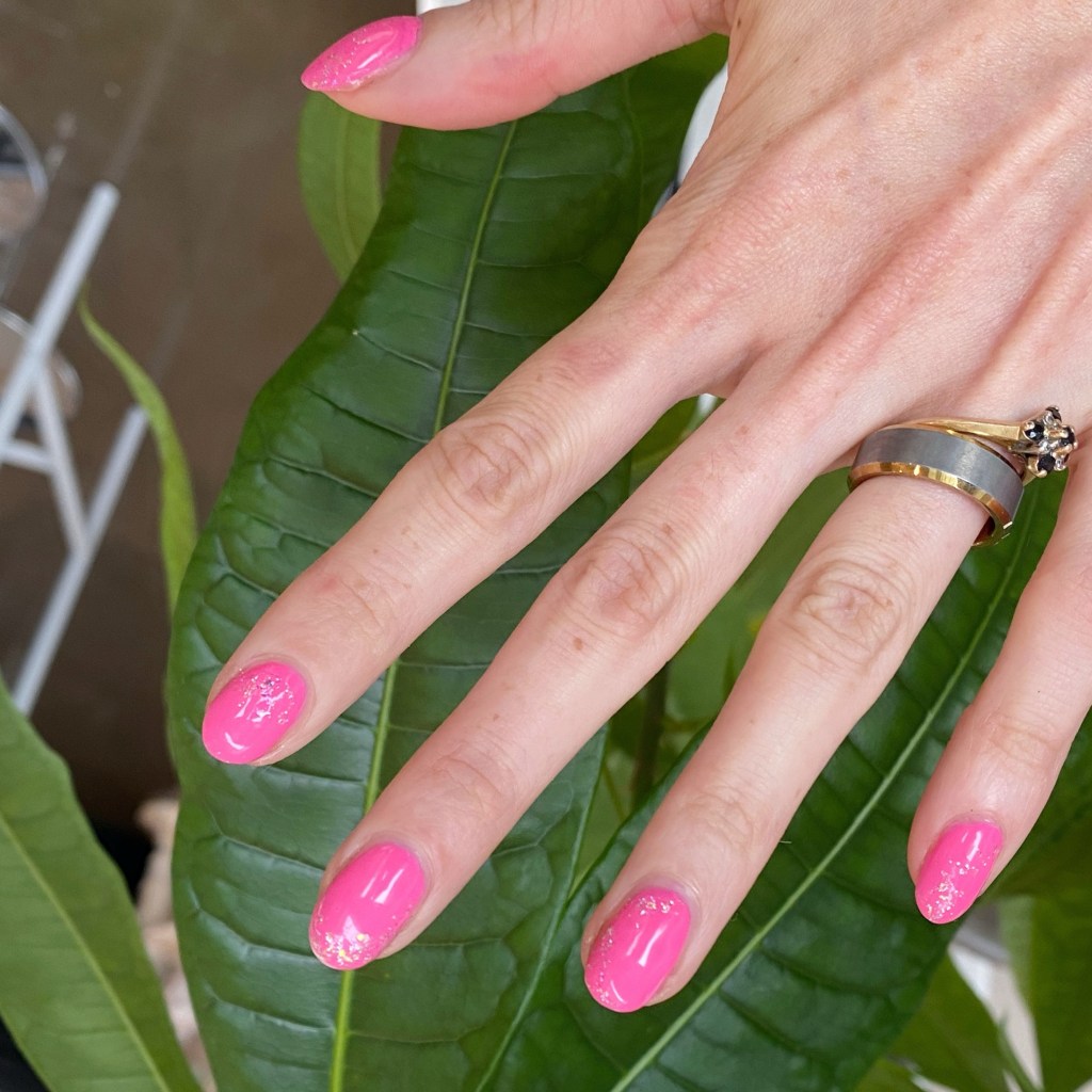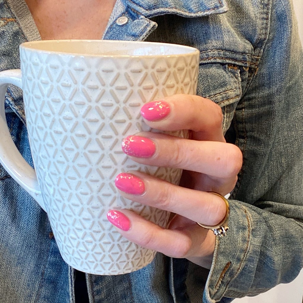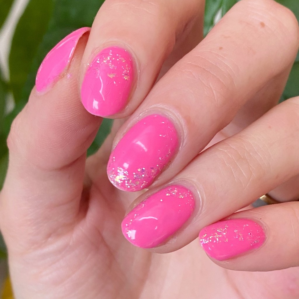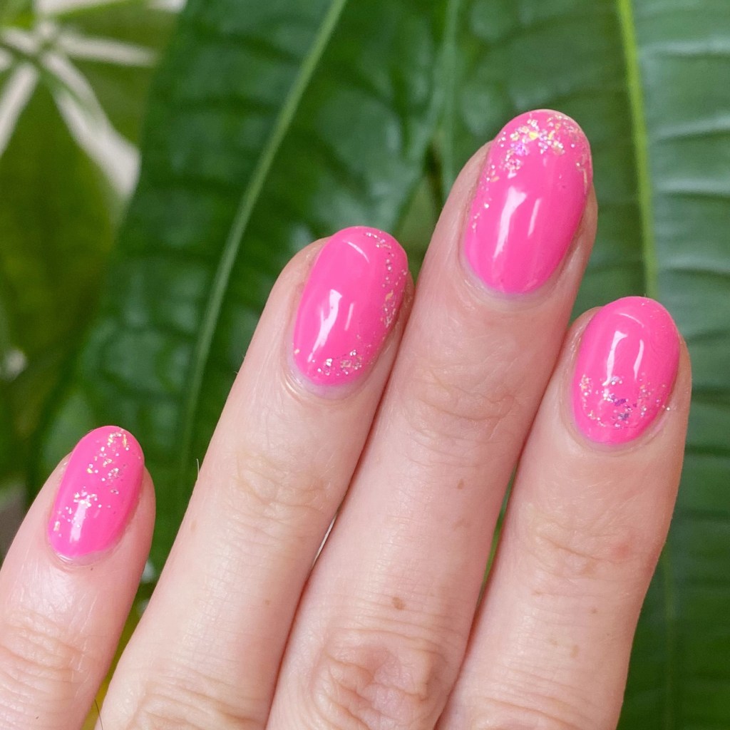 Look at those pretty sparkles! They’re just so pretty, & girlie & sparkly. I love it. This was also a super simple design to do, with no tools needed. & it’s just the right amount of sparkle — especially over a vibrant base like Glow With The Flow.